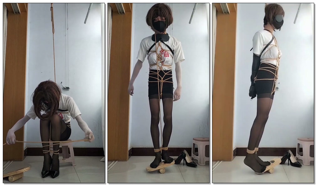 【玩家自缚】自缚,黑丝,在平衡板上强制踮脚,垫脚呼吸限制