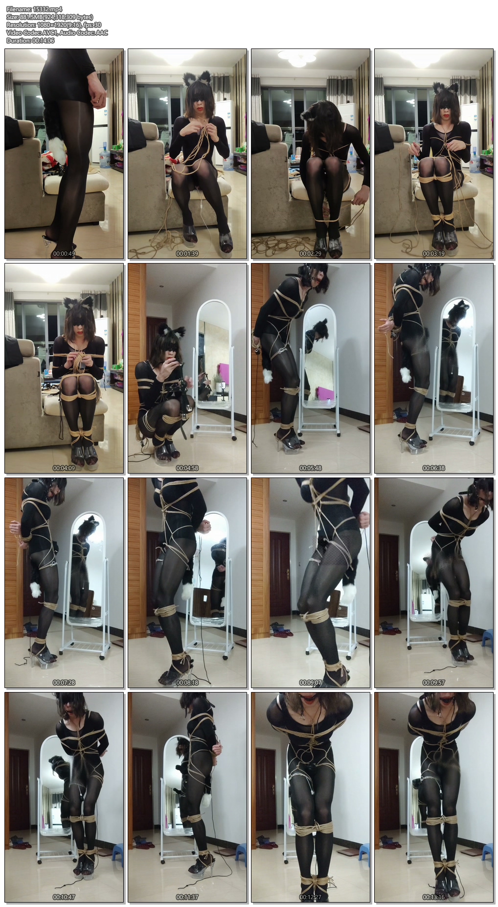 自缚的整个过程没有什么不舒服,看来术后恢复得不错。这期是回应之前有个粉丝要求的连体丝加尾巴.黑色连体丝裙加开档油亮袜,红指甲油透明高跟鞋,狠狠拿捏。那个恨天高被绑住大小腿和脚腕后走路一蹦一蹦地特别大声,微信业主群楼下都在群里艾特我妈了,她姑且是知道我衣柜里一堆女鞋跟女装,也不干涉我女装爱好,只是叫我安静点。害,谁能猜到21岁青年一个人在家女装自缚?