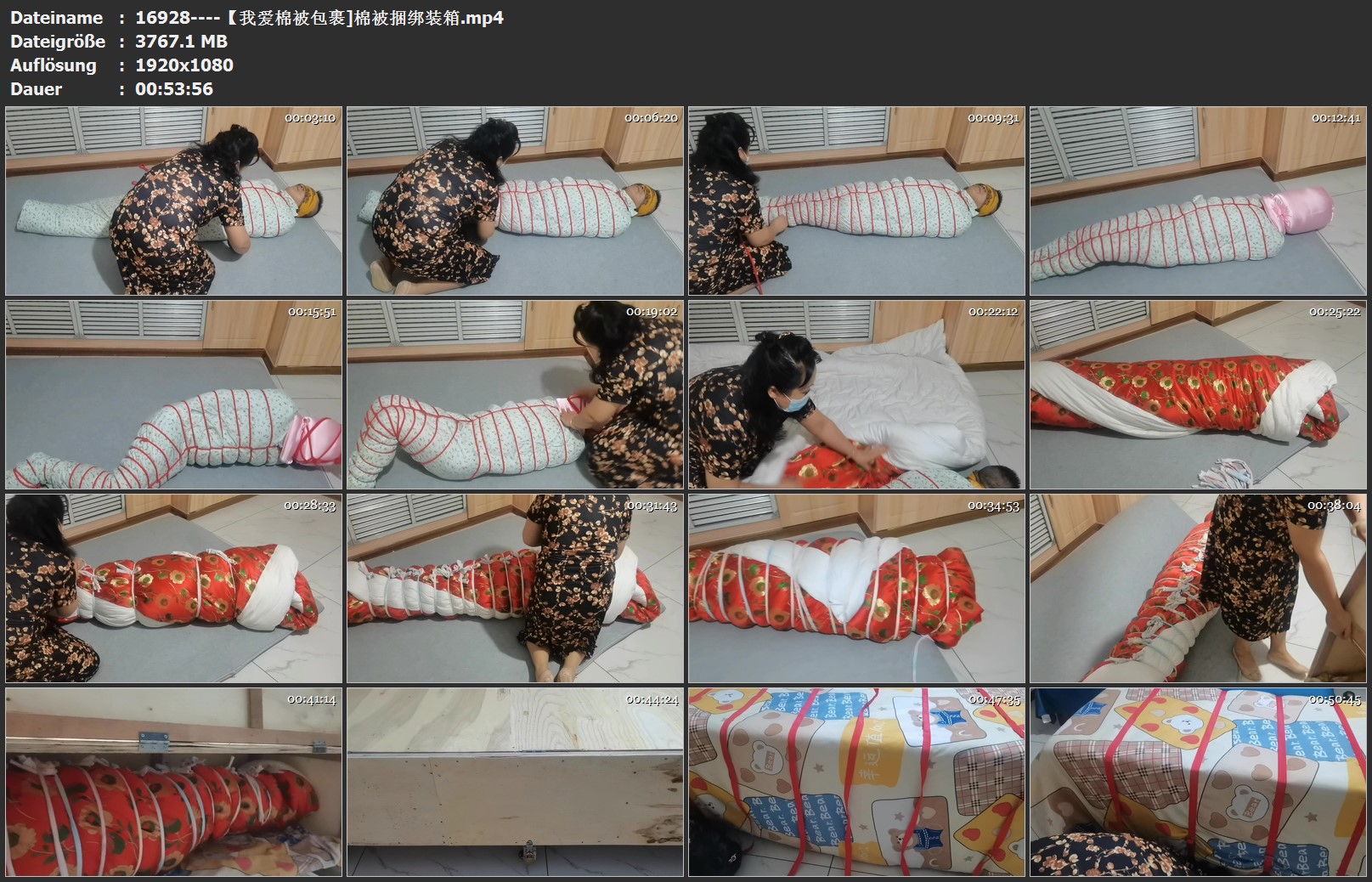 堵住嘴巴不让你叫,全身用棉被包裹起来用绳子紧紧捆绑,这还不够,再加一床超厚的棉被,继续捆绑,然后装到箱子里,外面再包上棉被,呻吟声也听不见了