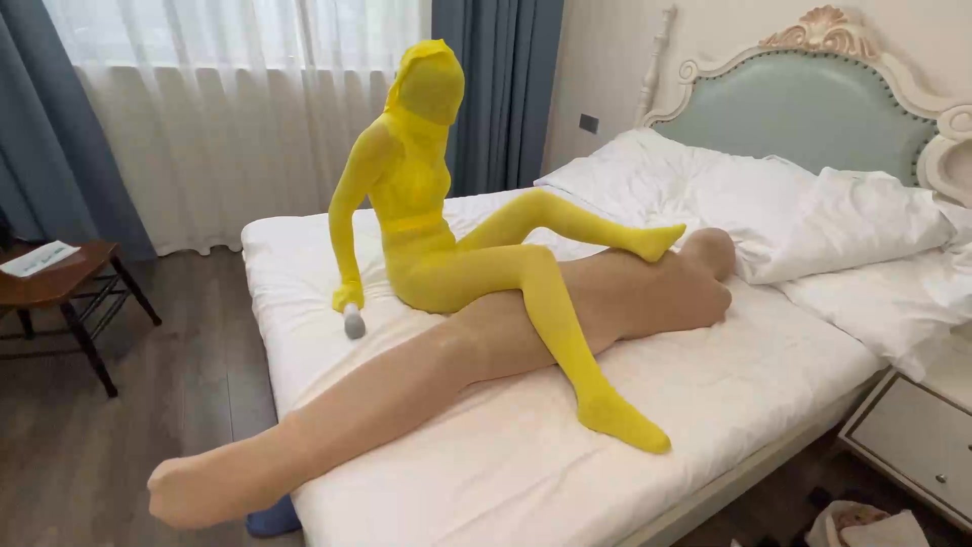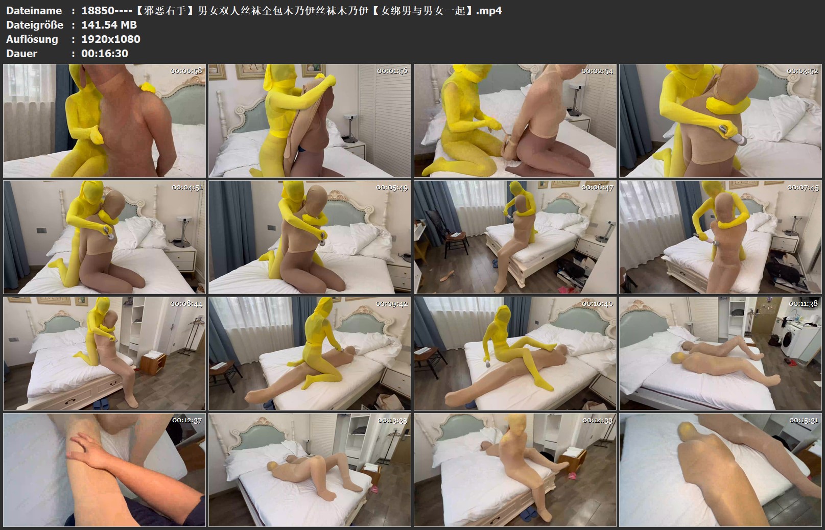 【邪恶右手】男女双人丝袜全包木乃伊丝袜木乃伊【女绑男与男女一起】