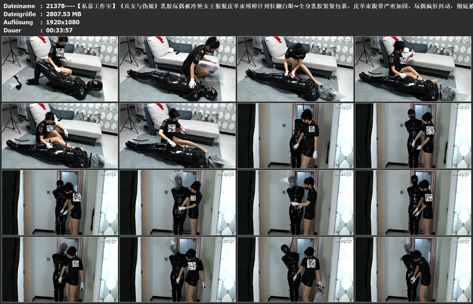 【私慕工作室】《真女与伪娘》乳胶玩偶被冷艳女王狠狠皮革束缚榨汁到狂翻白眼~全身乳胶紧紧包裹,皮革束腹带严密加固,玩偶疯狂抖动,彻底被TJ成一个 全身油亮的黑色肉块!