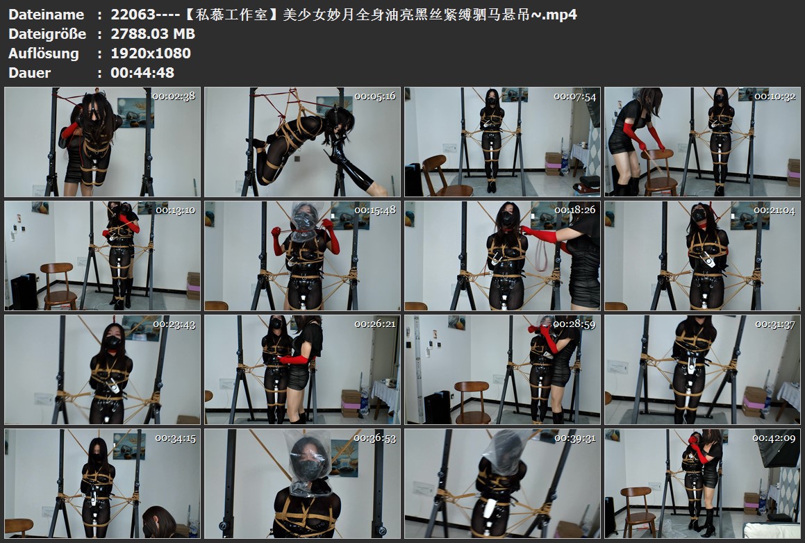 【私慕工作室】美少女妙月全身油亮黑丝紧缚驷马悬吊~ ...