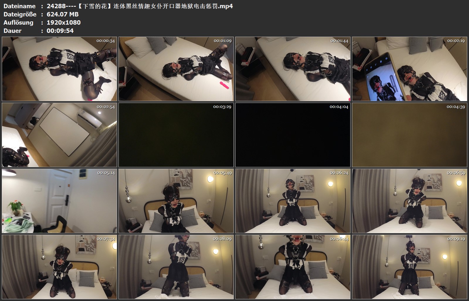 【下雪的花】连体黑丝情趣女仆开口器地狱电击惩罚 ...