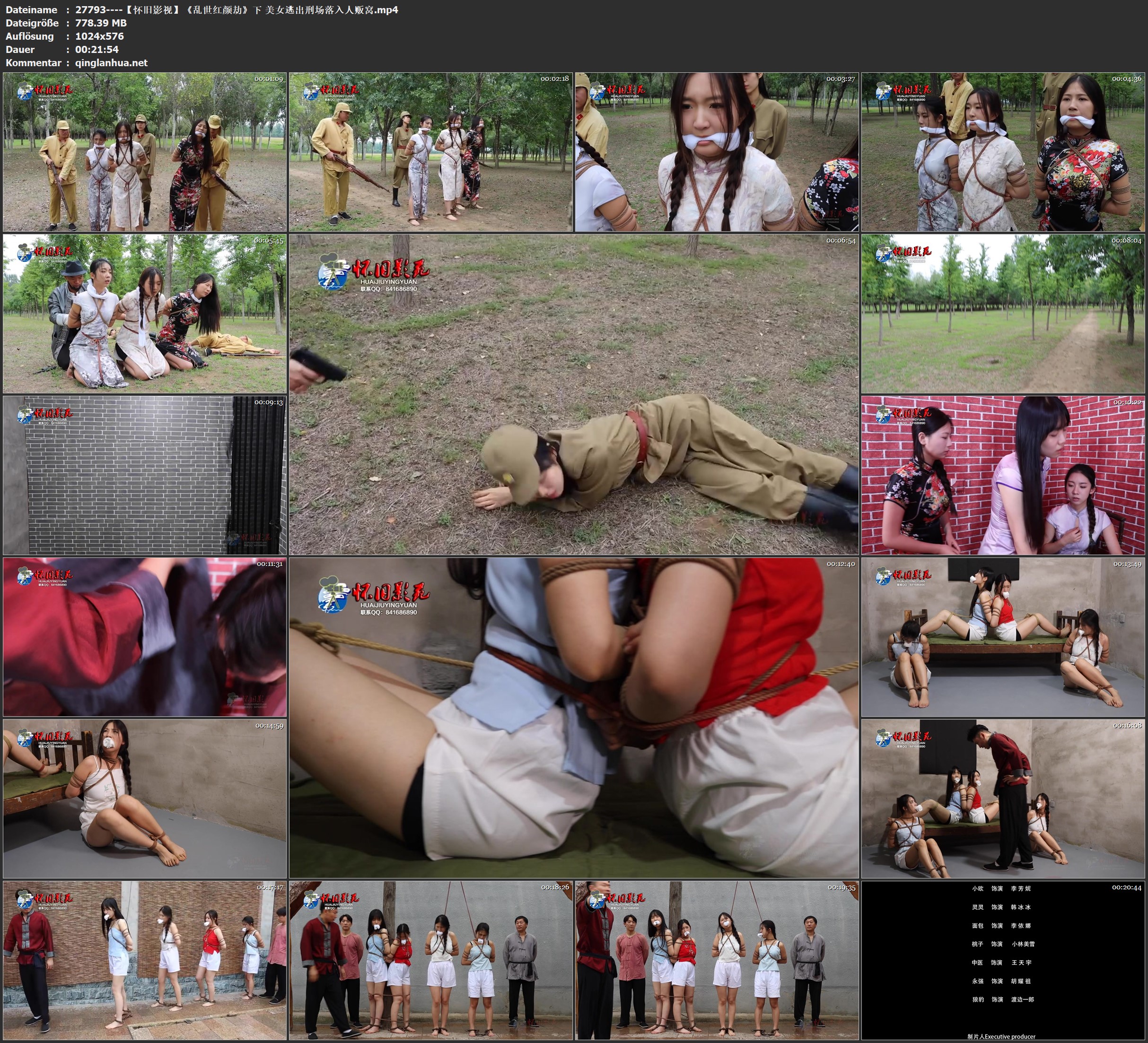 三女在刑场被救下,不料大当家被鬼子击伤不治身亡。三女压着女鬼子准备逃离敌占区,路过一户农家准备休息一下。哪想落入人贩的陷阱。四位美女都被迷晕后捆绑堵嘴撞进麻袋里运走。醒来后发现自己只剩贴身小衣,被绑的结结实实的。四位美女挣扎无果被人贩子绑在柱子上公开拍卖