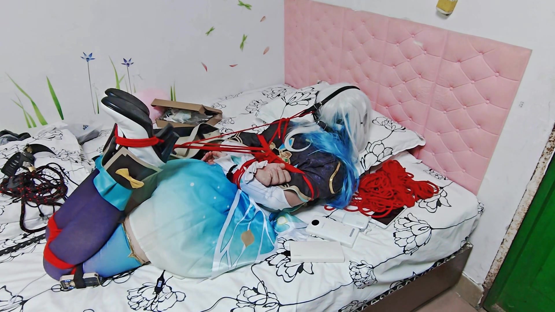 【槿榆喵】白丝艾莉cos自缚外出被发现,被装箱带回家捆绑调教QWQ