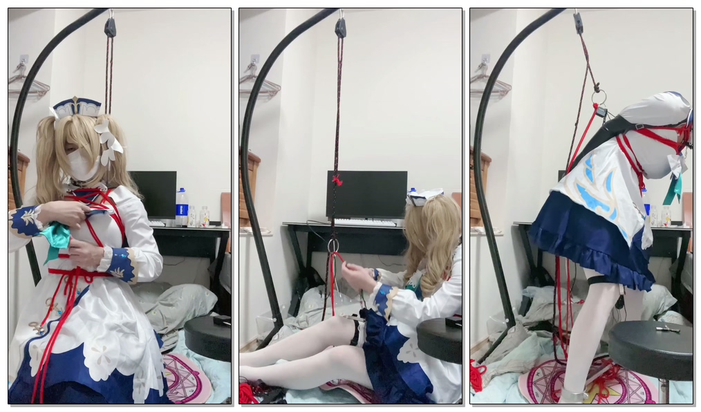 【槿榆喵】白丝艾莉cos自缚外出被发现,被装箱带回家捆绑调教QWQ