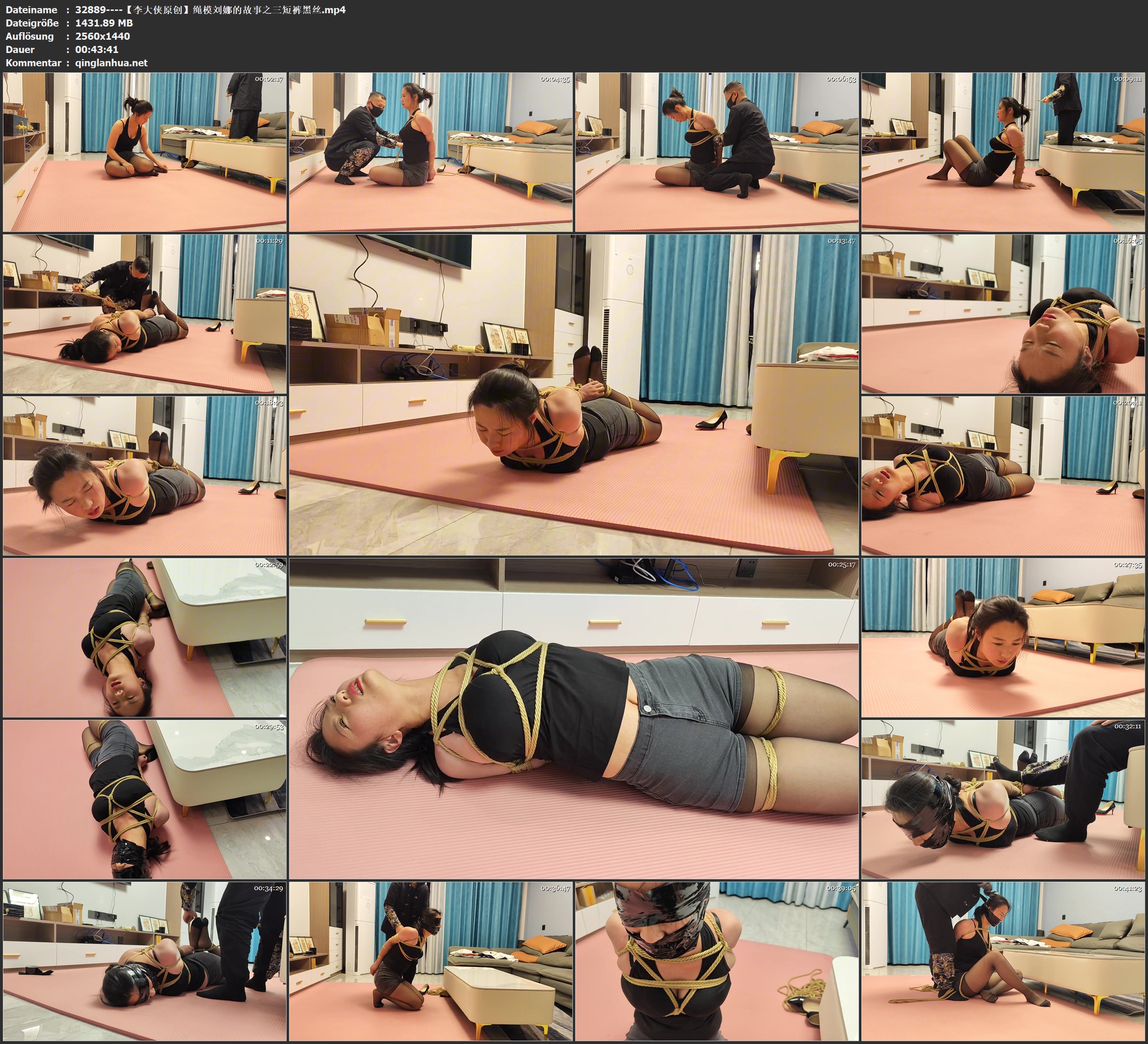 刘娜牛仔短裤黑丝,欧式紧缚,短袜塞嘴,胶带缠绕