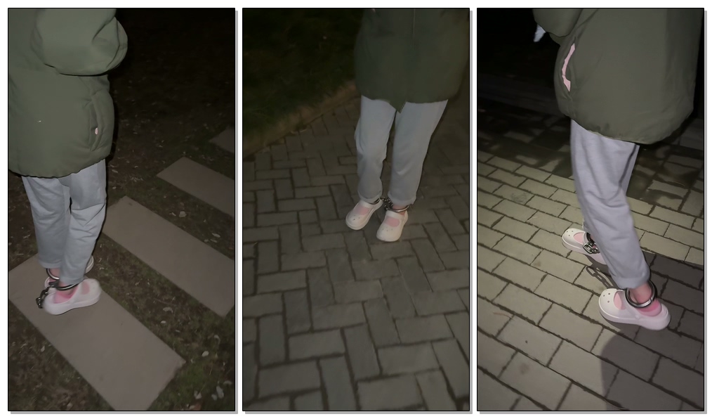 【局外人】学妹户外镣铐行走,各种脚镣
