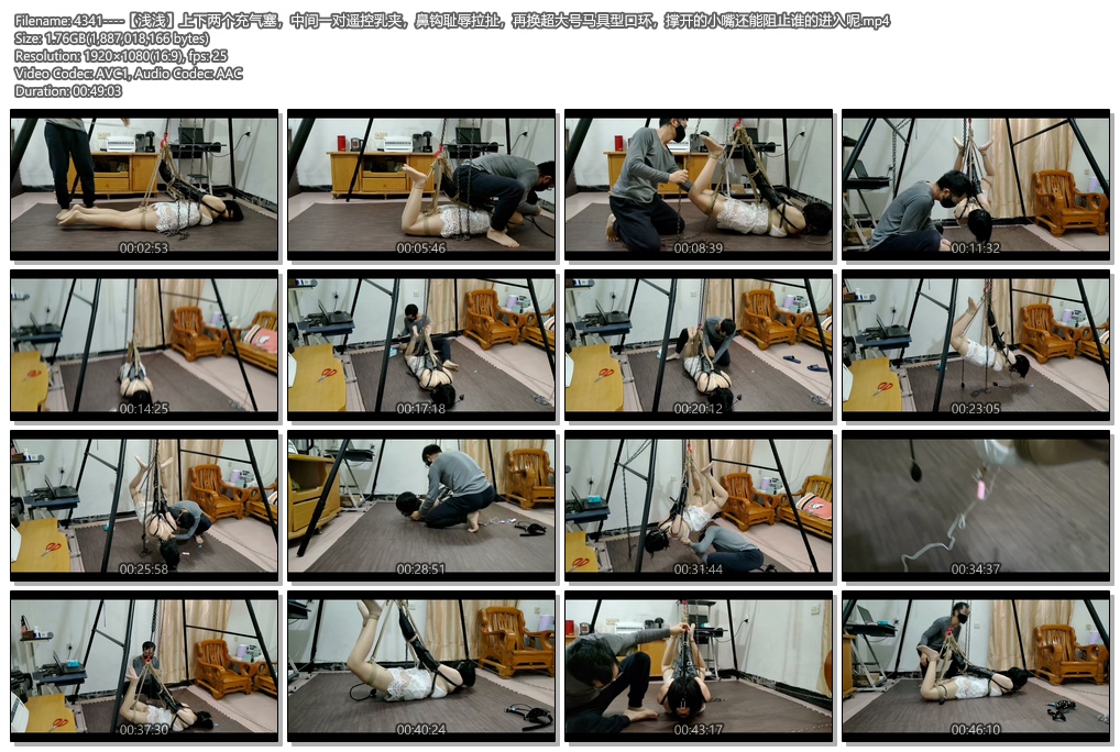 【浅浅】上下两个充气塞,中间一对遥控乳夹,鼻钩耻辱拉 ...