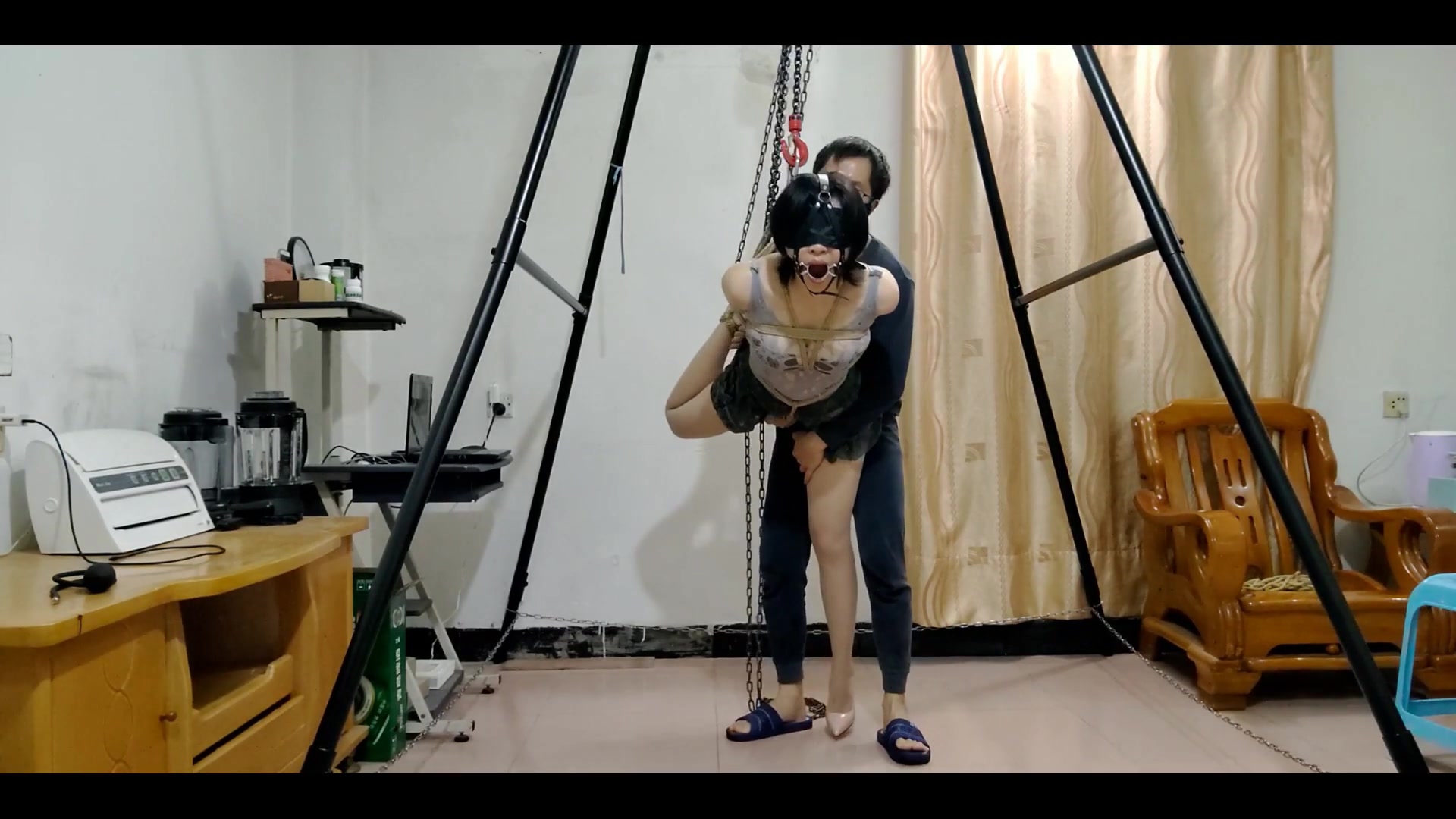 性感的小嘴配超大口枷,撑成0字型,这样的嘴型最方便主人进出,单腿吊,充气[手动滑稽],电击,[手动滑稽],真实的调教一个多小时