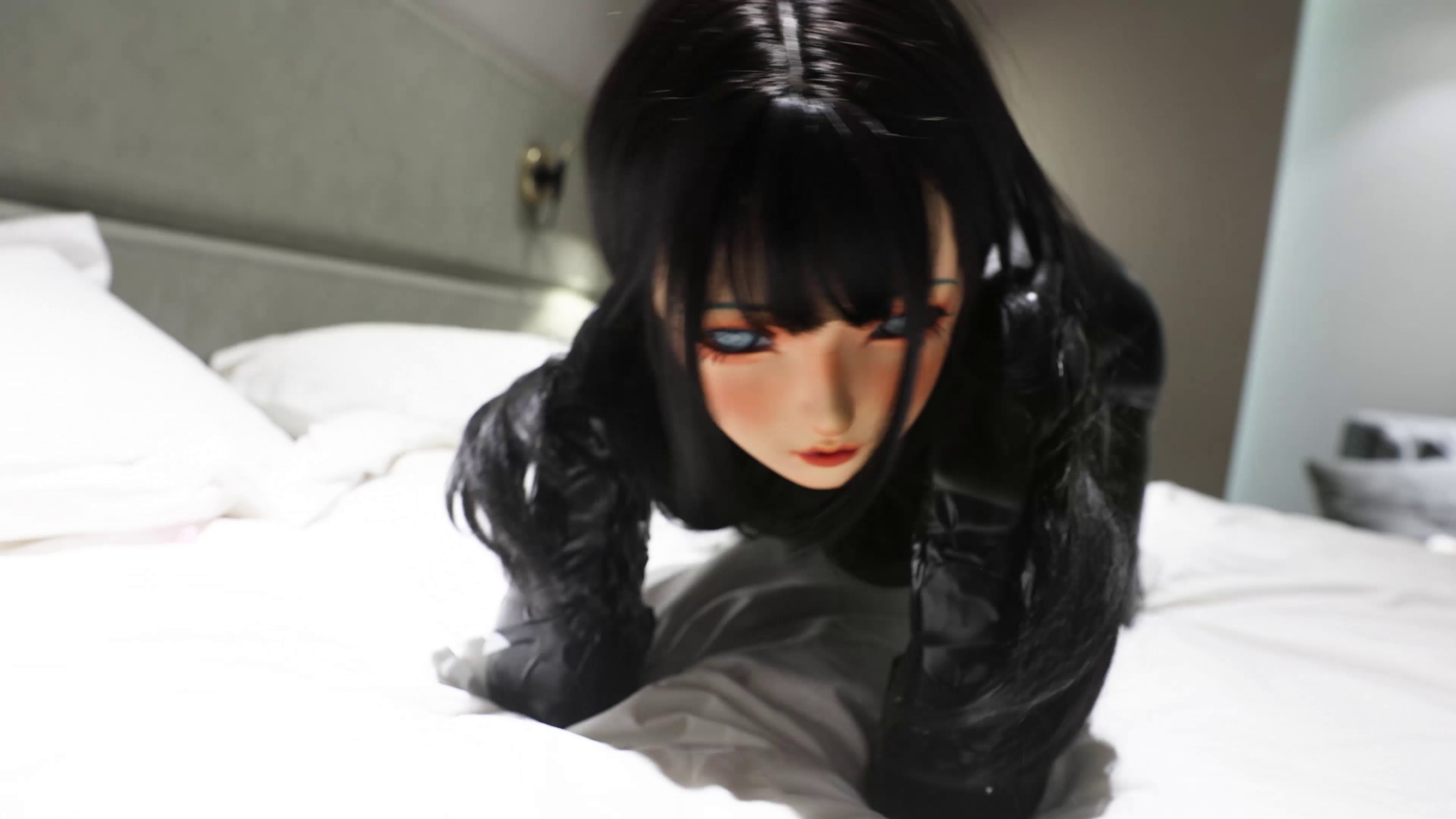 日常变娃TJ,娃穿了两件全包紧身衣,外面的是PU皮,只开了鼻孔,呼吸不是很顺畅,可以听到重重的呼吸音