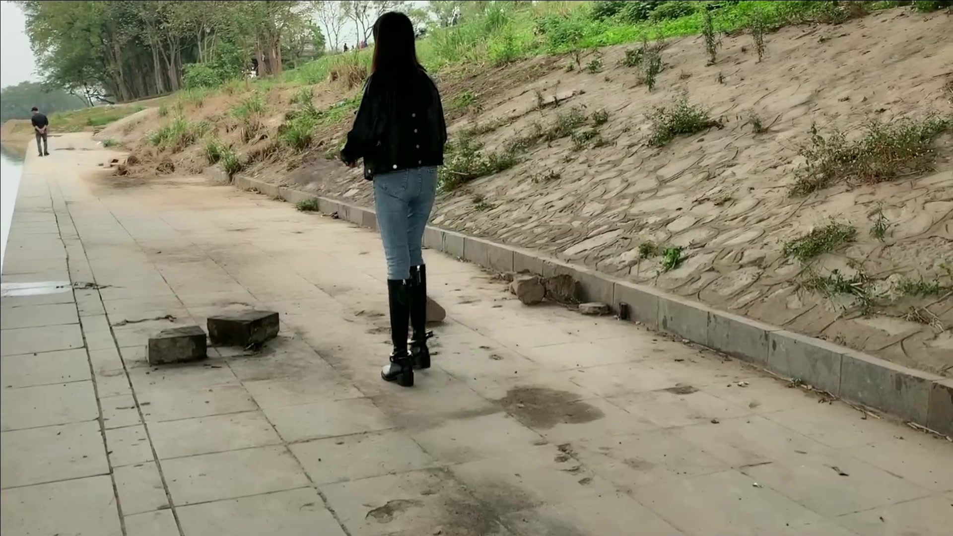真实戴着脚镣在户外找擦鞋匠擦皮靴,然后河边溜达……