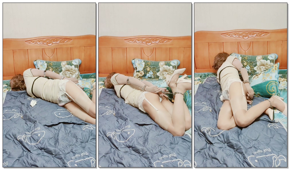 主人给我带上手肘铐拉的很近很紧,用马蹄铐铐住我的手,把脚用铁链和锁头锁上,然后把我扔到床上,把脚上的铁链对折拉紧锁到手铐上,真的只能左右翻滚,完全不可能逃脱,只能任主人宰割,我太难了,好痛苦啊